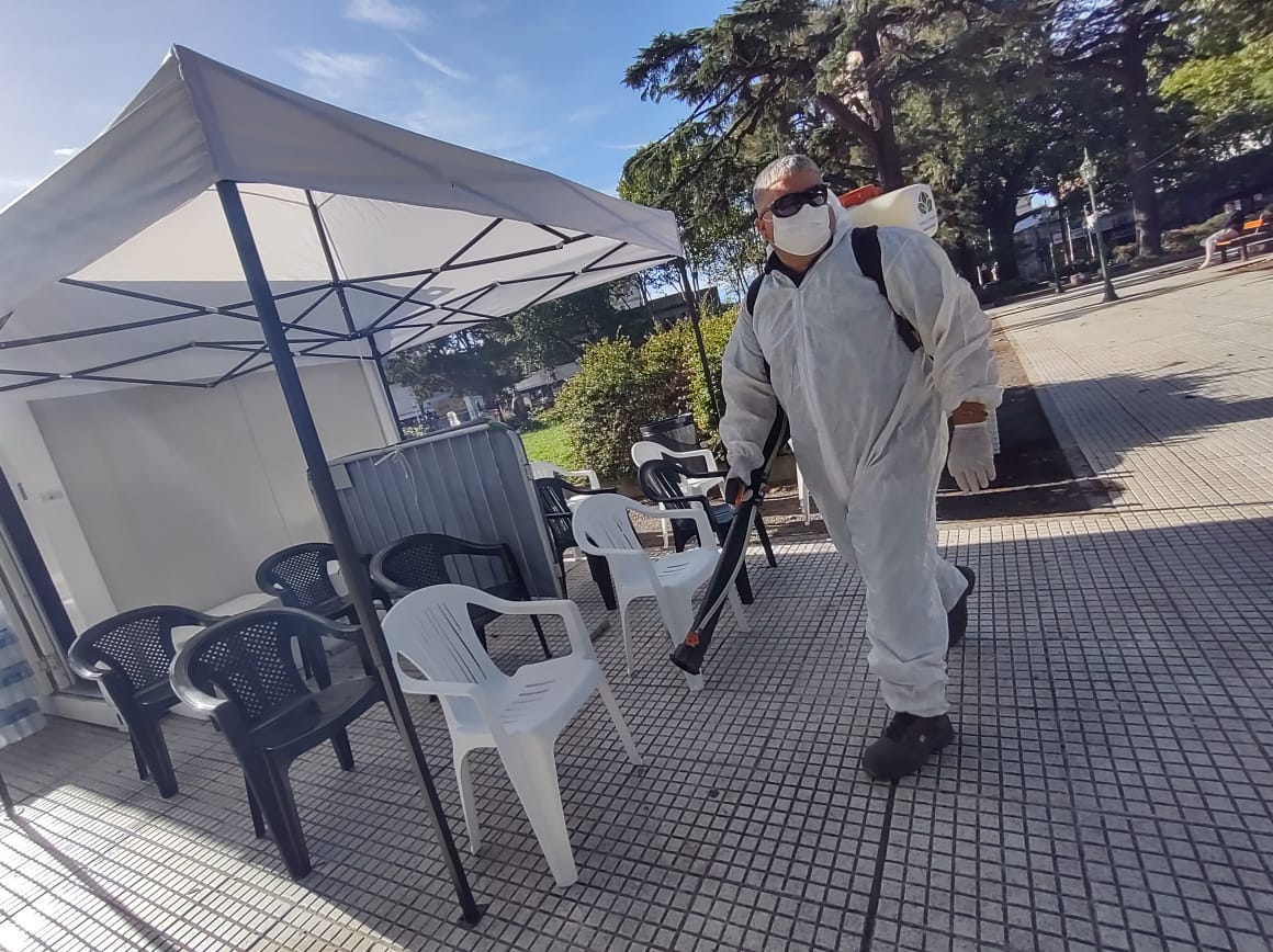 Los trabajos se realizan a diario en entidades públicas y dependencias municipales como es el caso de los centros de testeos, que se han dispuesto para detectar de forma temprana casos positivos de covid-19.