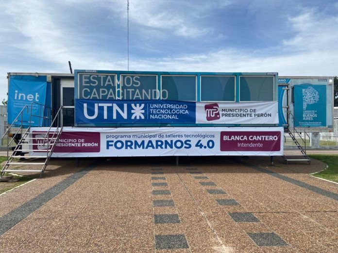 Es en el aula móvil ubicada en Guernica Centro, en el marco de un programa asociado entre el municipio de Presidente Perón y la Universidad Tecnológica Nacional. Los cursos, impulsados por el programa municipal de Presidente Perón «Formarnos 4.0», tienen abierta su inscripción para la Universidad Tecnológica Nacional y ofrecen la capacitación y buen uso de las tecnologías.