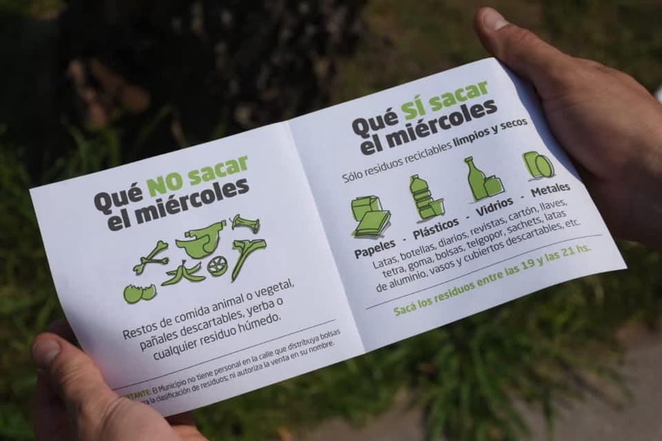 El programa “Día Verde” funciona los miércoles, jornadas en las que solo se recogen residuos reciclables como papel, plástico, vidrio y metales. Por lo tanto, ese día no se debe sacar basura ordinaria, como restos de comida, pañales descartables, yerba, o cualquier residuo húmedo.