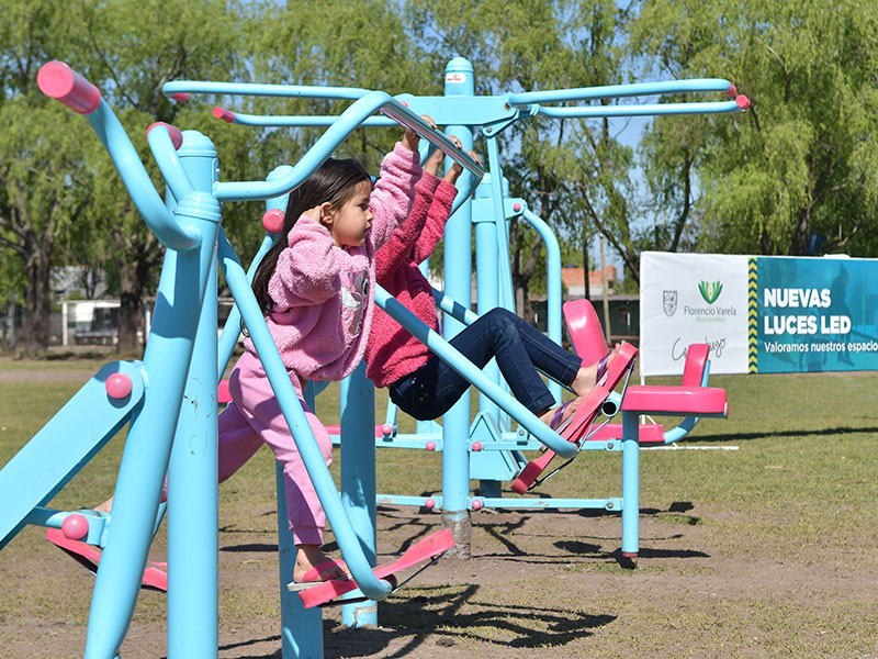 En el lugar colocaron cinco aparatos y repararon los pre-existentes para favorecer la actividad física; instalaron tres columnas de alumbrado más nueve de luminarias LED, dos cestos de residuos; plantaron 50 fresnos, emplazaron los mástiles con las banderas nacional, provincial y varelense; marcaron con granza el sendero perimetral; desmalezamiento más limpieza”.