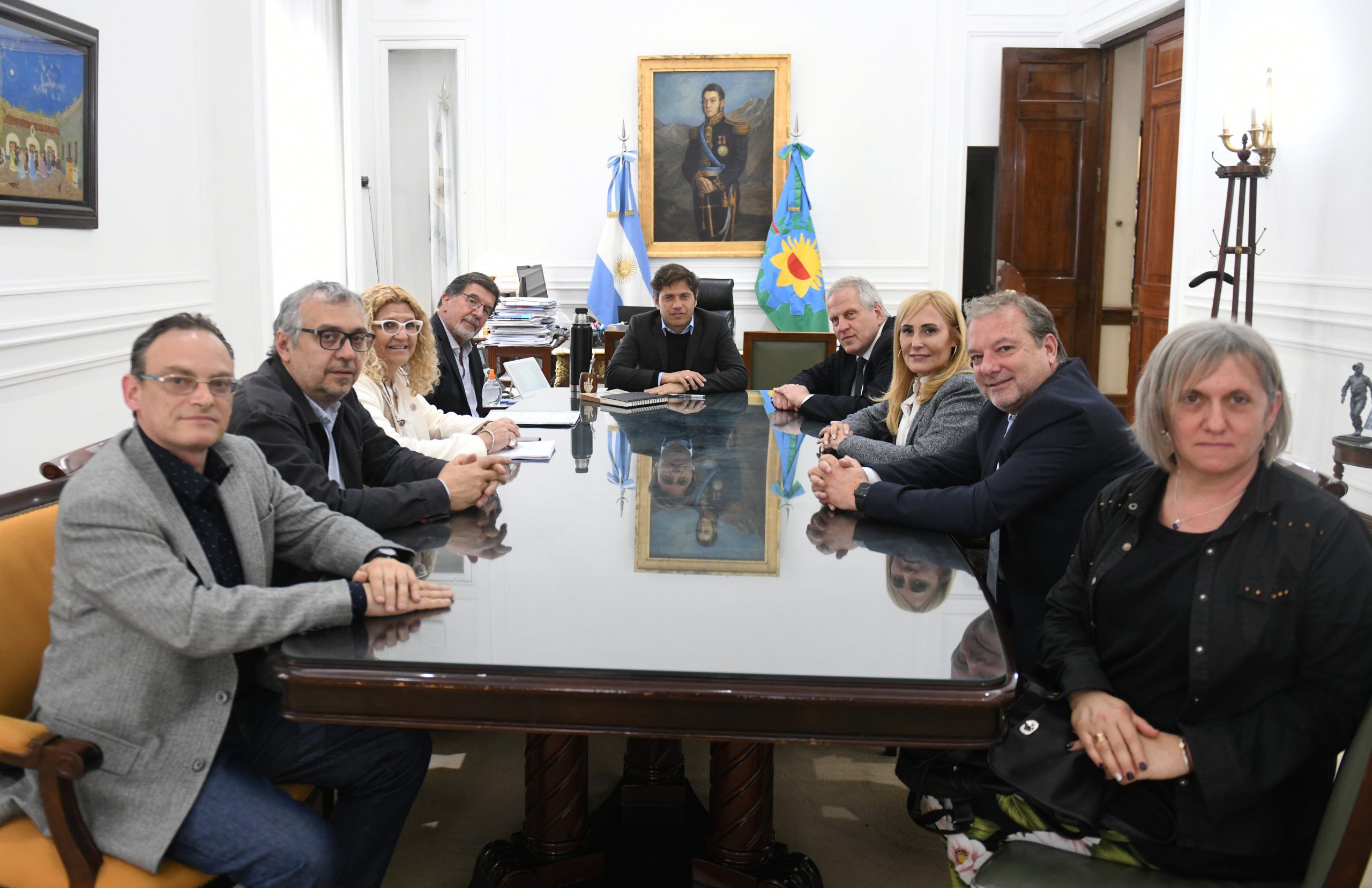 El gobernador Axel Kicillof encabezó una reunión con el ministro de Educación de la Nación, Jaime Perczyk, y el director general de Cultura y Educación, Alberto Sileoni, en la que se suscribió un convenio para ampliar la jornada educativa en escuelas primarias de gestión estatal de la provincia de Buenos Aires.