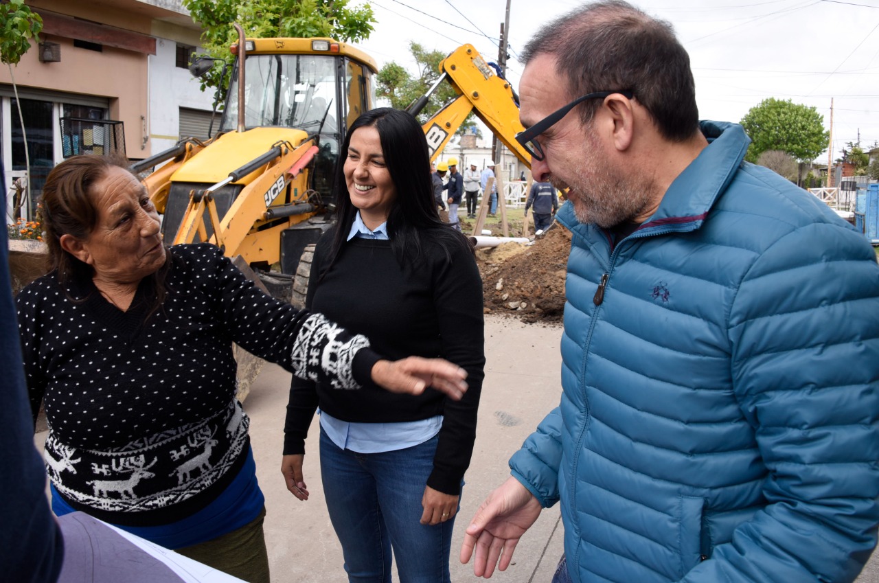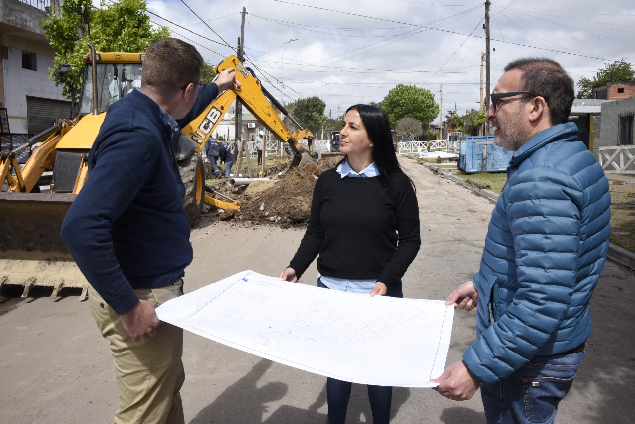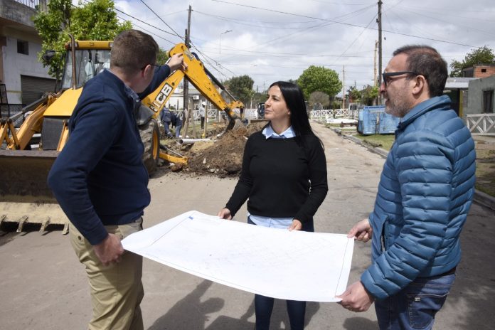 La intendenta interina de Malvinas Argentinas, Noelia Correa, y el vicepresidente primero del Senado bonaerense, Luis Vivona, supervisaron el avance de la obra de la red cloacal que se realiza en la ciudad de Villa de Mayo.