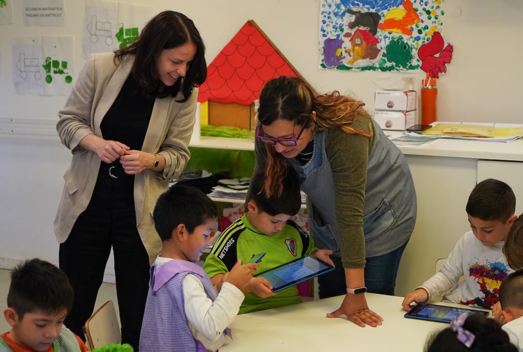 La intendenta de Vicente López, Soledad Martínez, recorrió el Jardín de Infantes N°6, una de las diez instituciones que incorporan la enseñanza de habilidades digitales desde los tres años. Allí participó de una clase de informática con los alumnos de sala de 5.