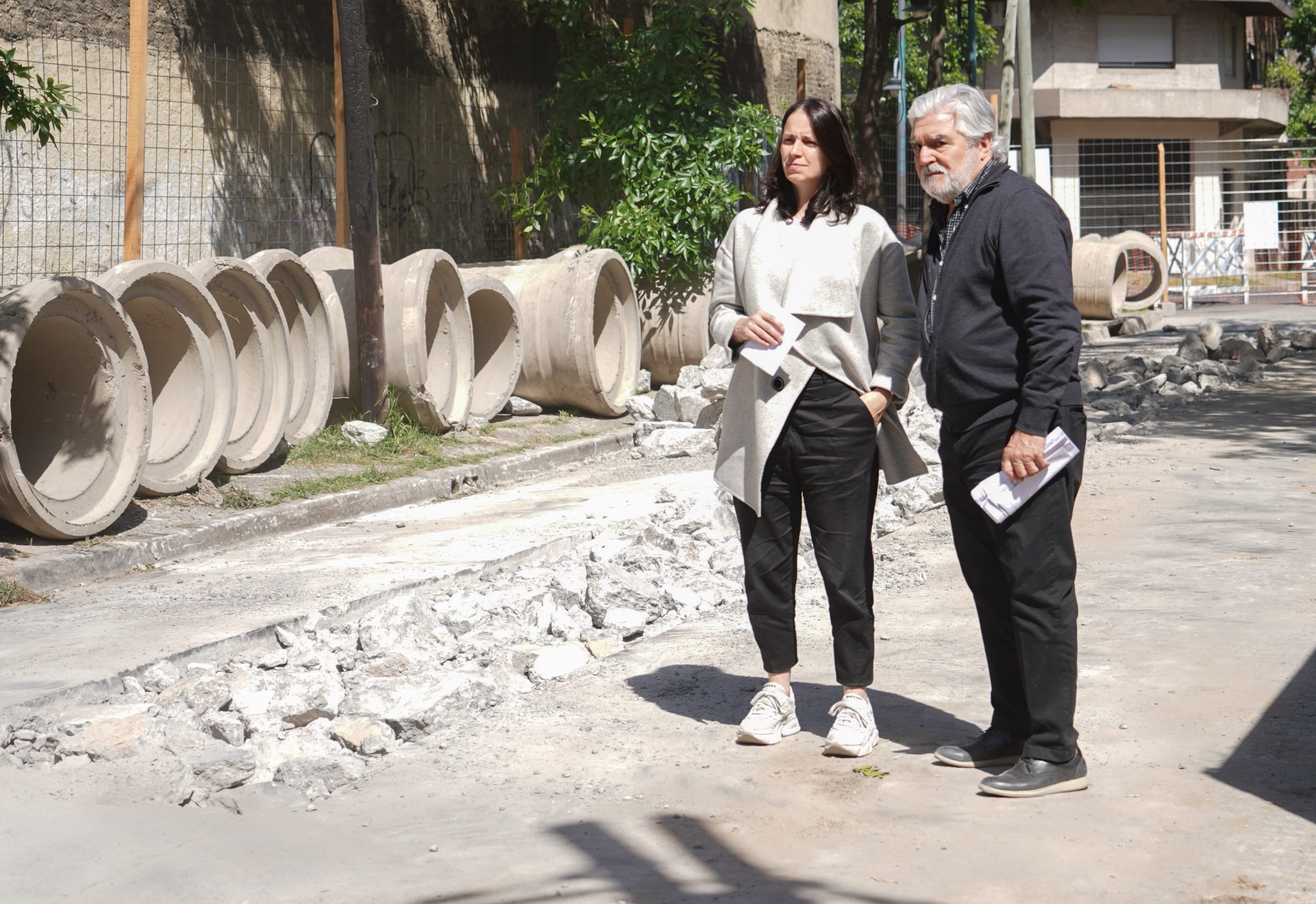La intendenta de Vicente López, Soledad Martínez, supervisó el avance de los trabajos de obra hidráulica que se están realizando sobre la calle Carlos Tejedor, en Florida Oeste.