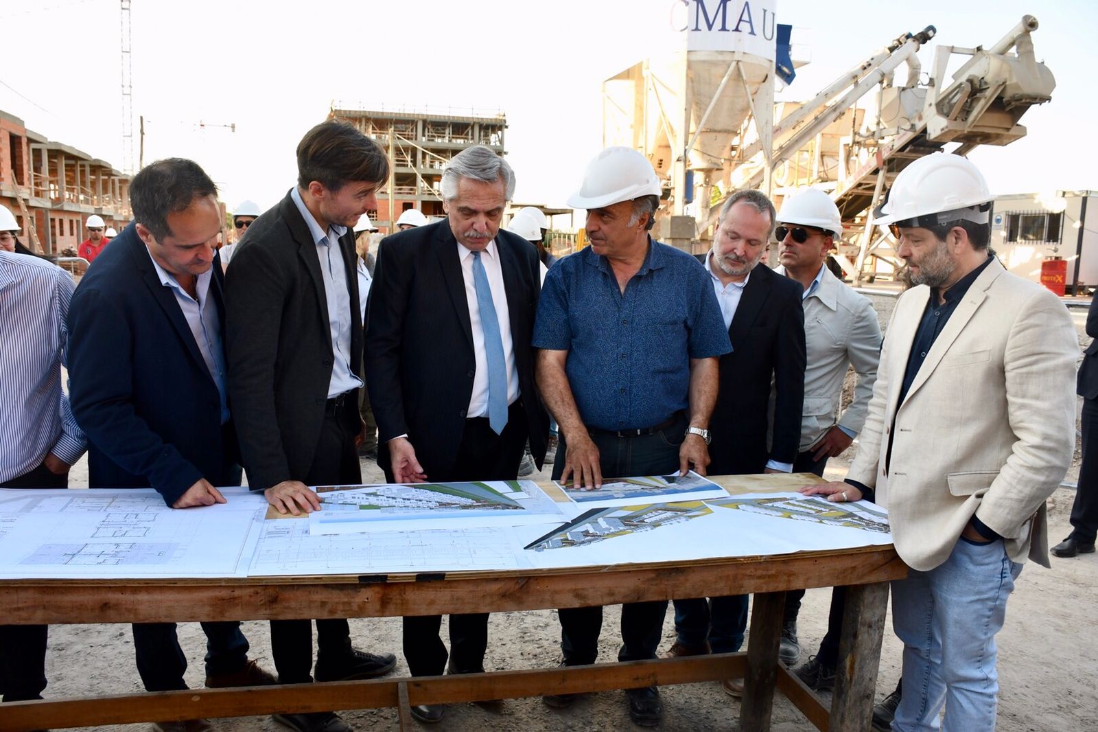 El presidente Alberto Fernández visitó Morón y junto al intendente Lucas Ghi, el ministro de Desarrollo Territorial y Hábitat de la Nación, Santiago Maggiotti y el ex jefe comunal, Martín Sabbatella, recorrieron las obras del complejo de viviendas del Procrear que se desarrolla en el barrio Gaona de El Palomar.
