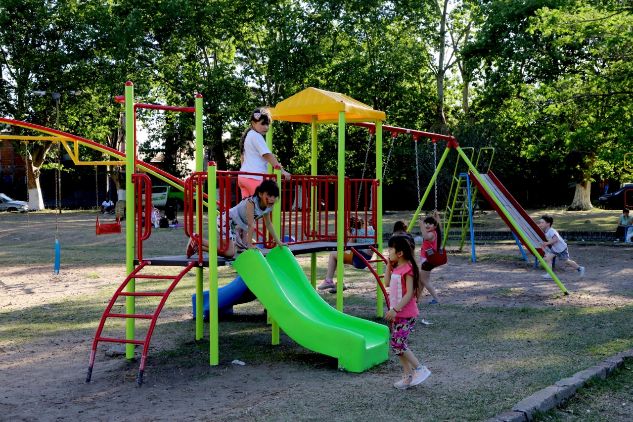 En 9 de Abril, las tareas de puesta en valor se realizan en la plaza ubicada entre las calles Lumsden, Nuestras Malvinas, Garreador y Benavídez, donde se llevan adelante la reposición de juegos infantiles y la colocación de un nuevo mangrullo con pórtico, pues, una vez finalizadas las labores, se contará con mesas y sillas.