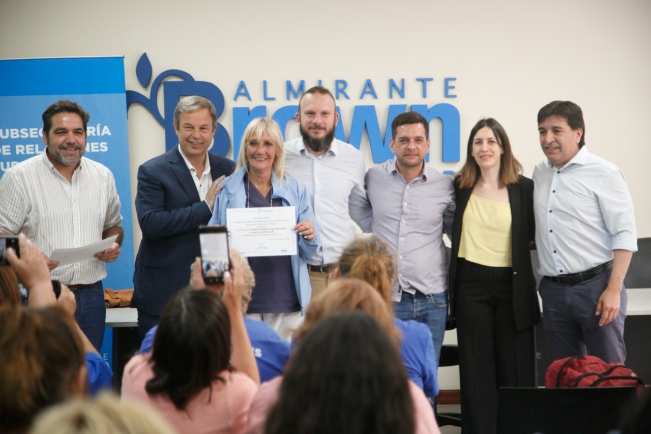 El intendente interino de Almirante Brown, Juan Fabiani, junto a autoridades del Ministerio de Justicia y Derechos Humanos de la Provincia de Buenos Aires, encabezó un emotivo acto que incluyó la entrega de diplomas de reconocimiento al personal que se desempeña como promotoras y promotores de la Salud en el distrito.