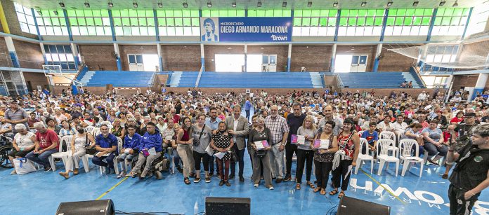 Durante un emotivo acto realizado en el Polideportivo Municipal de Ministro Rivadavia, el intendente interino de Almirante Brown, Juan Fabiani, concretó la entrega de 3900 tablets del programa «Conectando con vos» del Ente Nacional de Comunicaciones (ENACOM) a adultos y adultas mayores y personas con discapacidad del distrito.