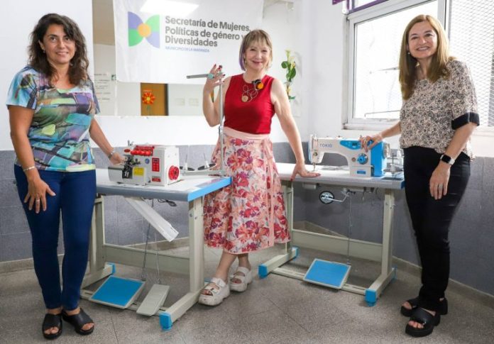 Autoridades encabezaron la entrega de maquinaria textil para la producción de toallitas menstruales reutilizables en el Centro de Atención a la Mujer (CAM) ”Irma Velázquez” de La Matanza, que pasará así de refugio a nodo productivo.