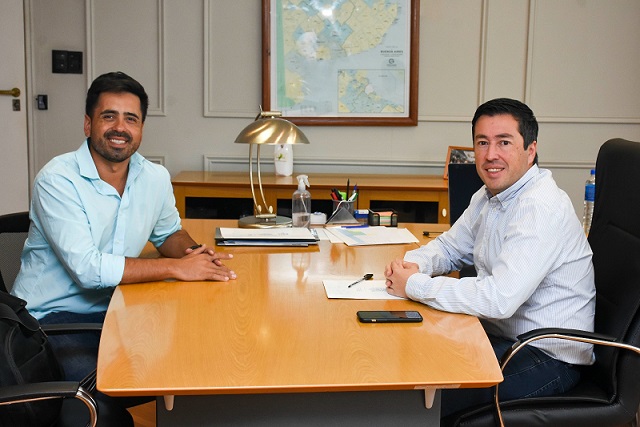 El ministro de Infraestructura y Servicios Públicos, Leonardo Nardini, recibió en su despacho al intendente de Carmen de Areco, Iván Villagrán, donde revisaron las distintas intervenciones en materia de obra pública que se están realizando en el partido.