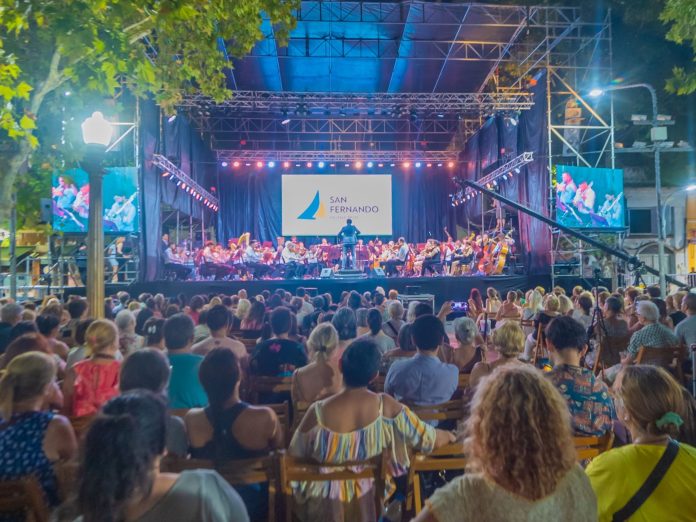 “La Sinfónica Nacional es el emblema del Ministerio de Cultura, una orquesta de jerarquía en vivo con todo lo que significa, para que el público pueda verla con acceso libre y gratuito gracias al esfuerzo del Municipio de San Fernando, y que el arte motive la posibilidad del encuentro para que los vecinos lo disfruten”, resaltó.