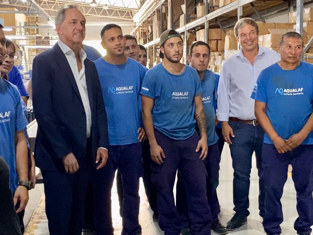 El embajador argentino en Brasil, Daniel Scioli, y el diputado Mariano Cascallares recorrieron la empresa Aqualaf en el Parque Industrial de Burzaco, una de las principales empresas productoras de grifería de la Argentina que continúa potenciando su crecimiento.