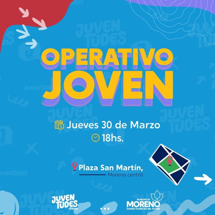 La Dirección de Juventudes de Moreno realizará un nuevo Operativo Joven este 30 de marzo, en la plaza San Martín, desde las 18 horas.