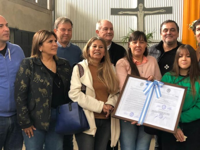 Además, durante la actividad, Cascallares entregó la ordenanza que dispuso nombrar Scali a la calle ubicada en inmediaciones a la parroquia, una iniciativa que fue convalidada por unanimidad por todos los bloques del parlamento browniano.