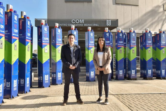 La intendenta de Malvinas Argentinas, Noelia Correa, y el ministro de Infraestructura y Servicios Públicos de la Provincia de Buenos Aires, Leonardo Nardini, realizaron la presentación de 30 nuevos tótems de seguridad que serán ubicados en distintos puntos estratégicos del distrito.