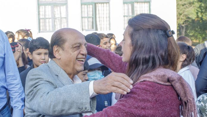 Durante su discurso, el mandatario comunal le agradeció, especialmente, «a las y los docentes por la calidad educativa que brindan». «Sabemos muy bien que un chico que está cómodo, aprende mejor. Vamos a seguir ayudando en todo lo que podamos. Cada vez que recibimos recursos económicos, priorizamos la educación. Así que, bienvenidos y bienvenidas los juegos de la plaza, las aulas y el nombre de Héroes y Heroínas de Malvinas para la biblioteca», comentó.