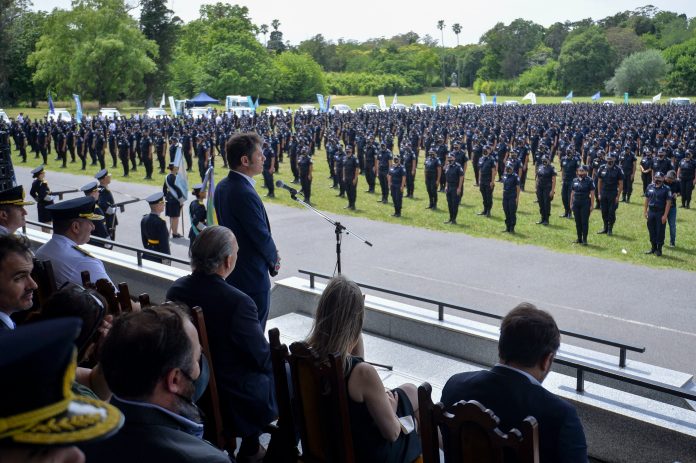 “Estamos coronando un enorme esfuerzo para seguir trabajando en el camino de recuperación y transformación de esta fuerza. Recibimos una policía absolutamente diezmada”, dijo Kicillof en su mensaje a los egresados y egresadas.