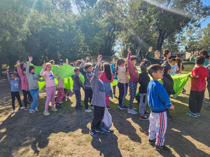 María Puscama, coordinadora de Deporte Escolar, expresó: «Se llevó a cabo una nueva jornada de Deporte Escolar con el primer ciclo de la Primaria N° 43. Vinieron los chicos y las chicas de 2do y 3er grado a participar de distintas propuestas que incluyen juegos alternativos, a través de los cuales socializan, conocen el predio de Los Privilegiados y disfrutan de un ambiente natural. Se trata de jugar en la naturaleza con distintos materiales, como botellas, bolsitas, rompecabezas y demás elementos».