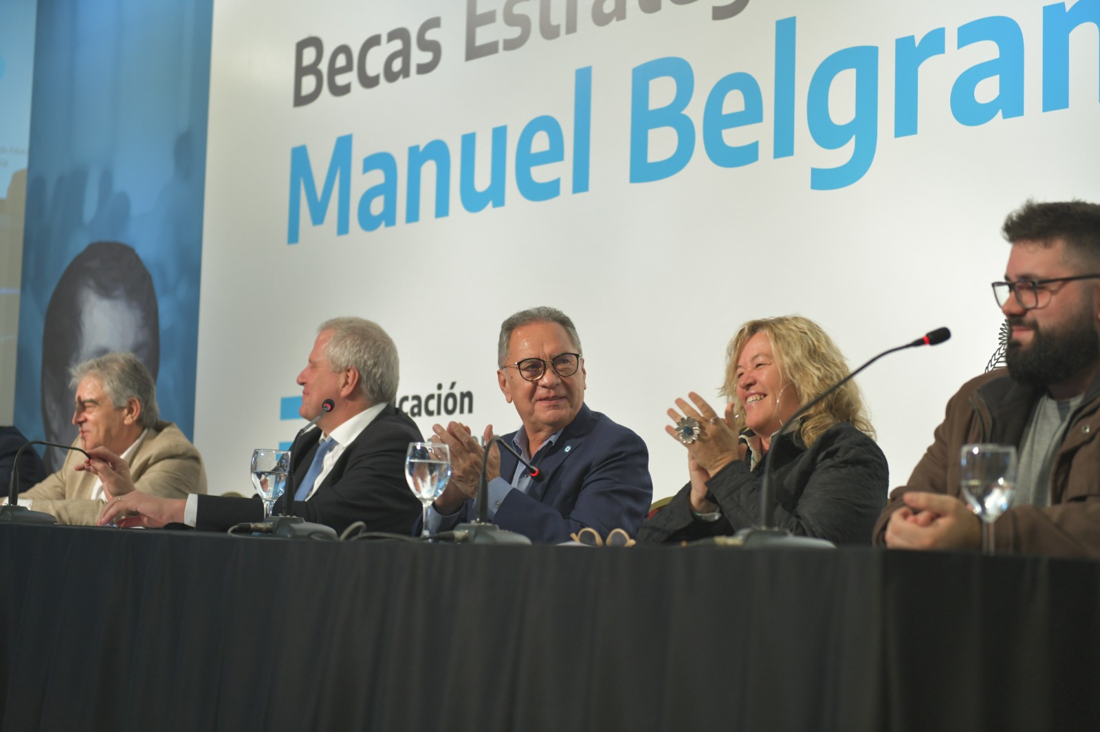 El intendente Alberto Descalzo, junto al Ministro de Educación de la Nación, Jaime Perczyk, encabezaron el acto de adjudicación de 14.859 becas del programa Manuel Belgrano, destinadas a estudiantes terciarios y de carreras de grado de diferentes puntos del país.