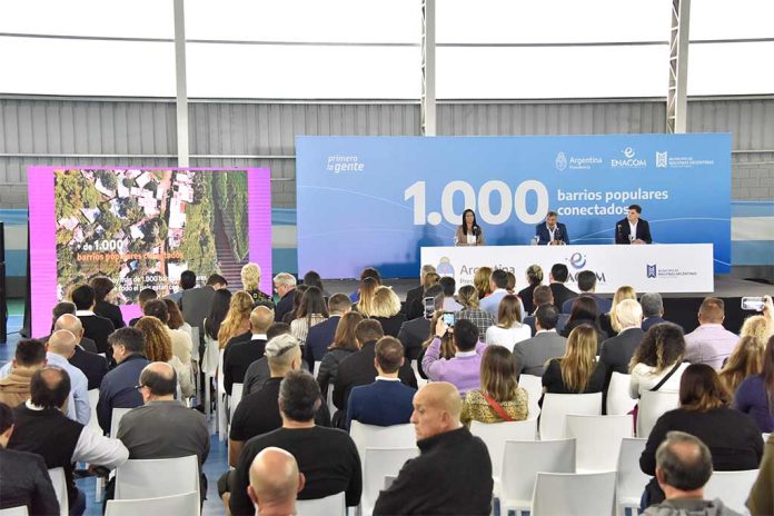 La intendenta interina de Malvinas Argentinas, Noelia Correa, estuvo junto al presidente del Ente Nacional de Comunicaciones (ENACOM), Claudio Ambrosini, en el Polideportivo de Tierras Altas-Tortuguitas, con el acto presentación del Programa “1.000 barrios populares conectados”, el cual ya permitió llegar a más de 5.600.000 personas que ahora cuentan con acceso a internet.