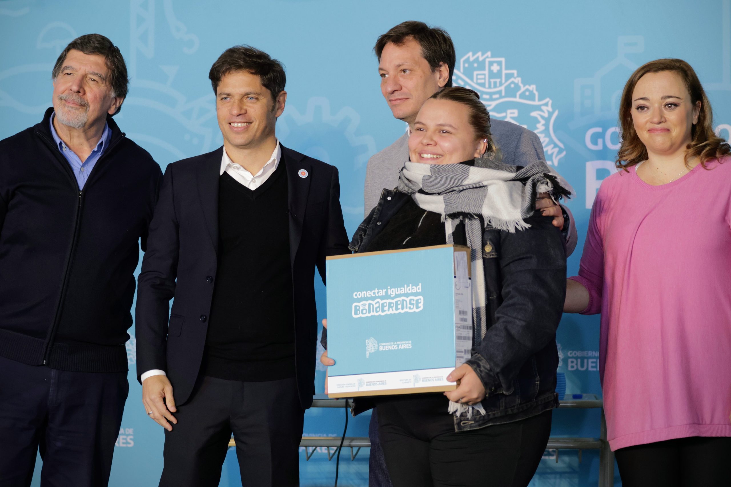 “Macri y Vidal les sacaron las computadoras a los chicos. Nosotros relanzamos la versión bonaerense de Conectar Igualdad, con la distribución de 168 mil computadoras a los pibes y pibas del ultimo año del secundario, lo que viene a reparar un daño”, continuó.