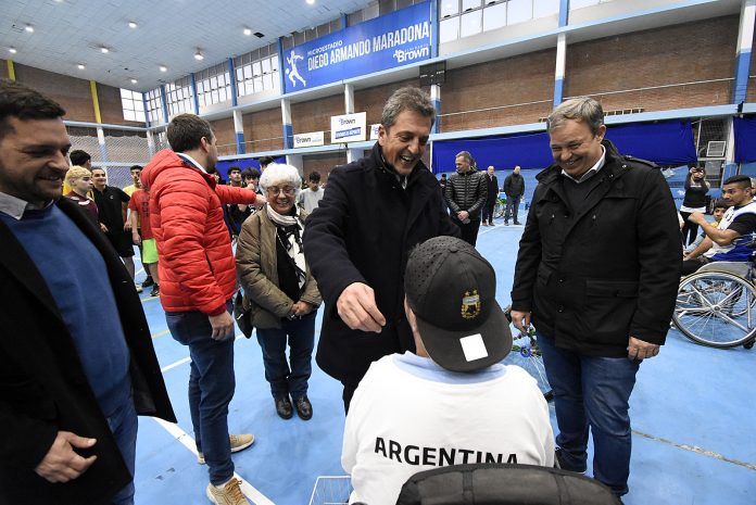 La jornada comenzó en el polideportivo ubicado en el cruce de 25 de Mayo y Quiroga, donde Sergio Massa, Cascallares y Fabiani dialogaron con deportistas que realizaban prácticas en distintos sectores del predio, entre ellas natación, atletismo, fútbol, boccia y básquet.