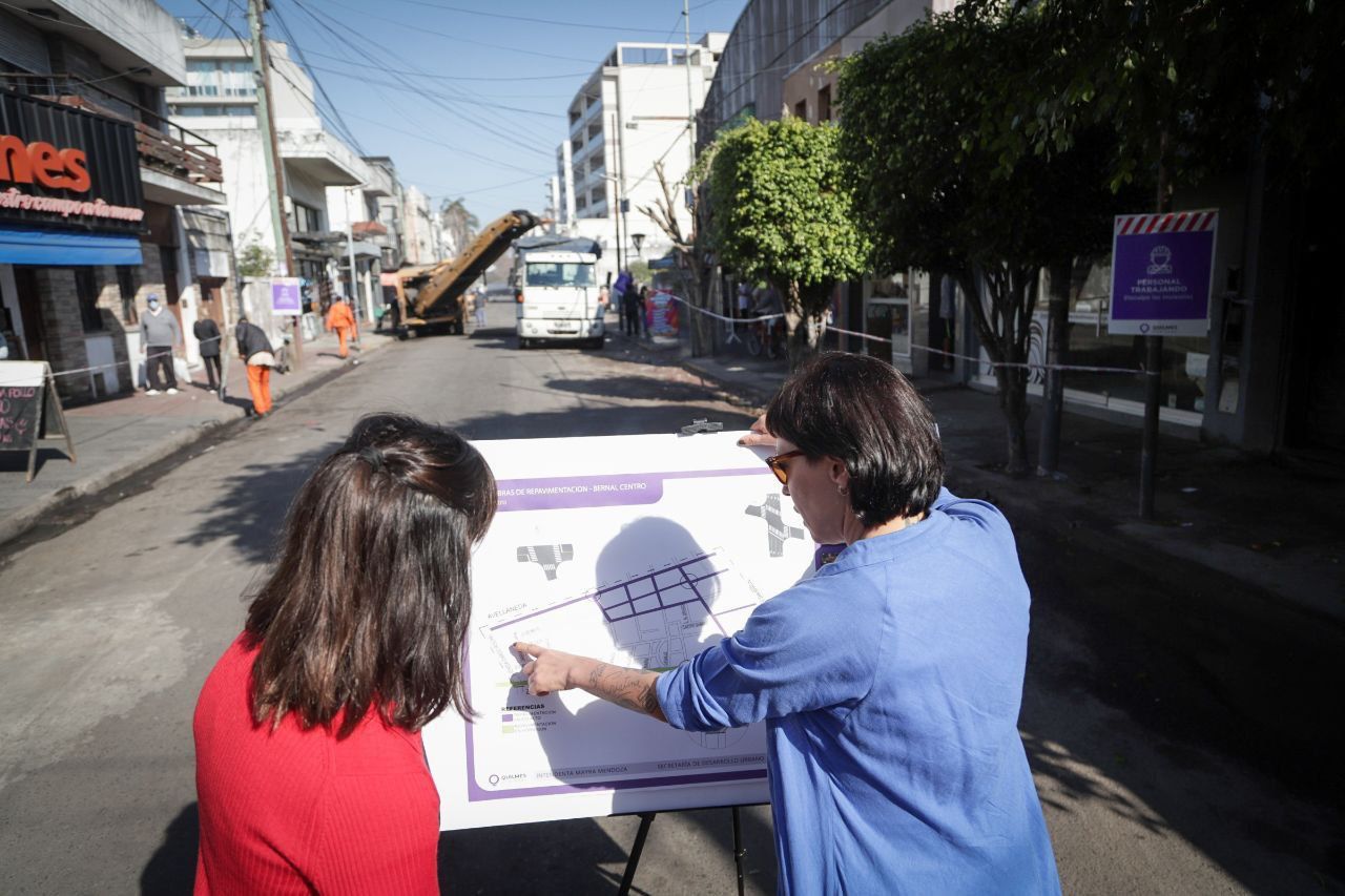 La intendenta de Quilmes, Mayra Mendoza, recorrió la obra de repavimentación en el centro de Bernal, que se está ejecutando en el sector delimitado por las avenidas San Martín, Zapiola, Dardo Rocha y Avellaneda, en un total de 31 cuadras, y dialogó con vecinos y comerciantes de la zona.