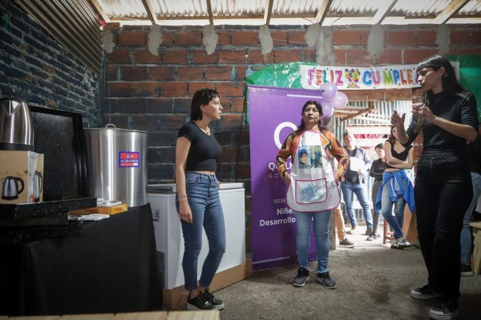 «En los centros comunitarios, en los comedores, están los corazones solidarios. Es un punto de encuentro de gente que se siente bien cuando pueden hacer sentir bien a otros, a los niños sobre todo y a las familias en general, porque es una ayuda para las familias. Eso es lo que queremos seguir haciendo. Y que estos espacios, cuando logremos que las familias tengan trabajo, no sean lugares donde tengan que venir a comer, sino que puedan venir a la biblioteca, a divertirse, a jugar», sostuvo la mandatario, que estuvo acompañada por la secretaria de Niñez y Desarrollo Social local, Florencia Di Tullio.