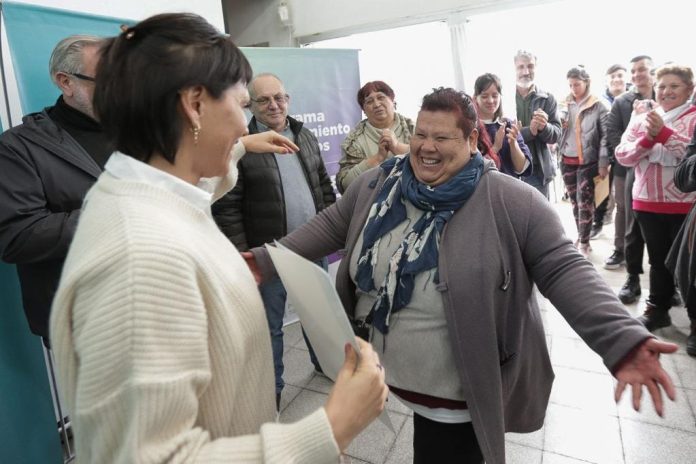 «Entregamos 75 adjudicaciones a familias del barrio Santa Lucía, esto lo hicimos en un trabajo en conjunto con la Provincia de Buenos Aires para poder darles seguridad jurídica a muchas familias que hace 30 o 40 años que están esperando. Esto es producto del trabajo mancomunado y de un Estado presente, y hay que defenderlo para poder tener garantizados los derechos», expresó la mandataria.