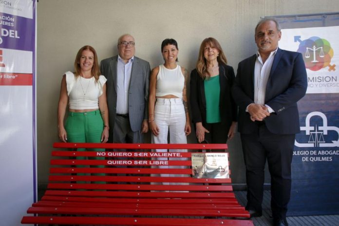 La intendenta de Quilmes, Mayra Mendoza, participó, junto a autoridades judiciales, de la inauguración de un Banco Rojo que se colocó en la sede del Colegio de Abogados de Quilmes (CAQ), ubicado en Colón 333, en el centro de la ciudad, en el marco de la conmemoración del Día Internacional de la Eliminación de la Violencia Contra las Mujeres.