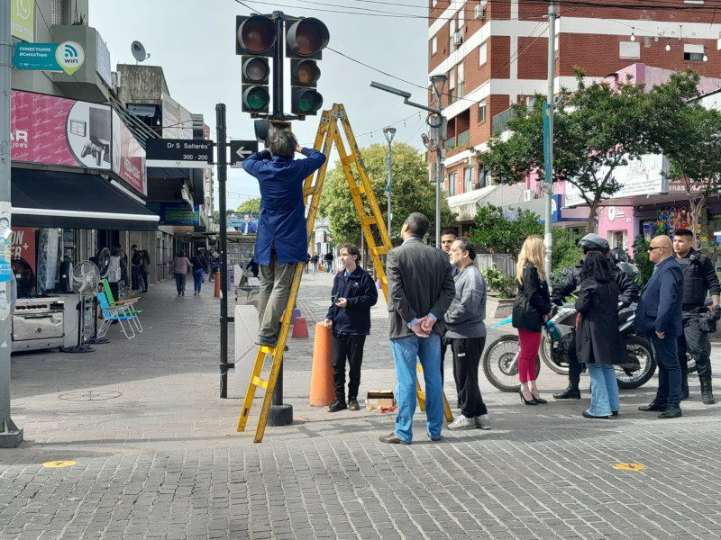 El Municipio de Florencio Varela instaló en la intersección de la Peatonal Monteagudo con Sallarés un dispositivo de tránsito para peatones con discapacidad visual elaborado en colaboración con la Secundaria Técnica Nº1 luego que sus estudiantes presentaran la propuesta al intendente Andrés Watson durante la exhibición anual efectuada en ese establecimiento educativo.