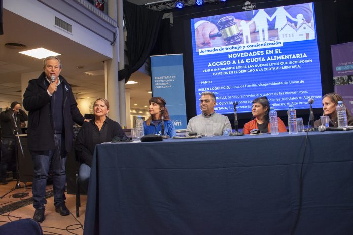 En la actividad, que contó con la participación del intendente de Almirante Brown, Mariano Cascallares, disertaron la jueza de Familia del Departamento Judicial de Lomas de Zamora, Dra. Belén Loguercio; el subsecretario de Relaciones Judiciales del Municipio, Dr. Leonardo Olivera y la subsecretaria de mujeres, diversidad y niñeces, Leda Quintana, quienes hicieron hincapié en la relevancia de las normativas que modernizan el proceso judicial y buscan reducir la cantidad de mujeres que no reciben los aportes para mantener y criar a sus hijos, una problemática que aflige a las madres y sobre todo vulnera los derechos básicos de cuidado de los menores.
