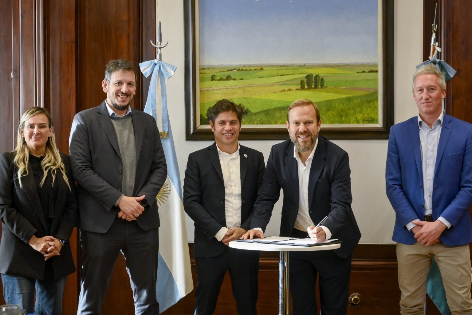 El intendente de Ezeiza suscribió al leasing con el gobernador Axel Kicillof y el presidente del Banco Provincia, Juan, Cuattromo.