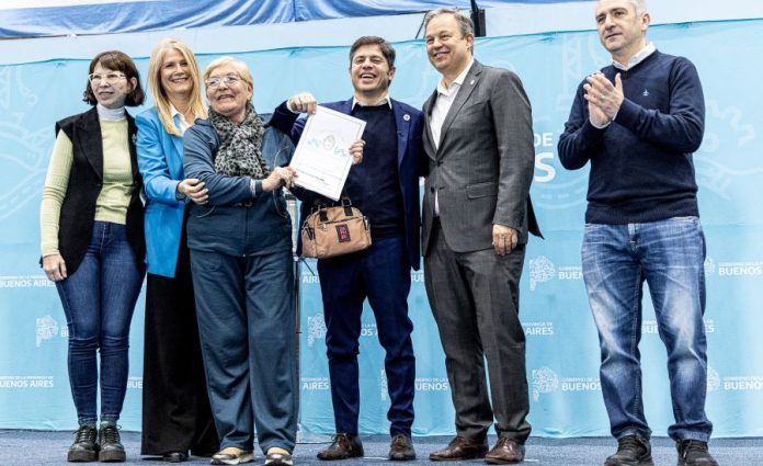“Con estas escrituras que estamos entregando hoy no solo venimos a reconocer derechos que fueron postergados durante mucho tiempo, sino a expresar una vez más la importancia de sumar la fuerza necesaria para defender a las y los bonaerenses”, subrayó Kicillof y añadió: “No podemos permitir que la motosierra entre a la provincia de Buenos Aires para destruir al Estado y dejar a millones sin acceso a la salud, la vivienda y la educación”.