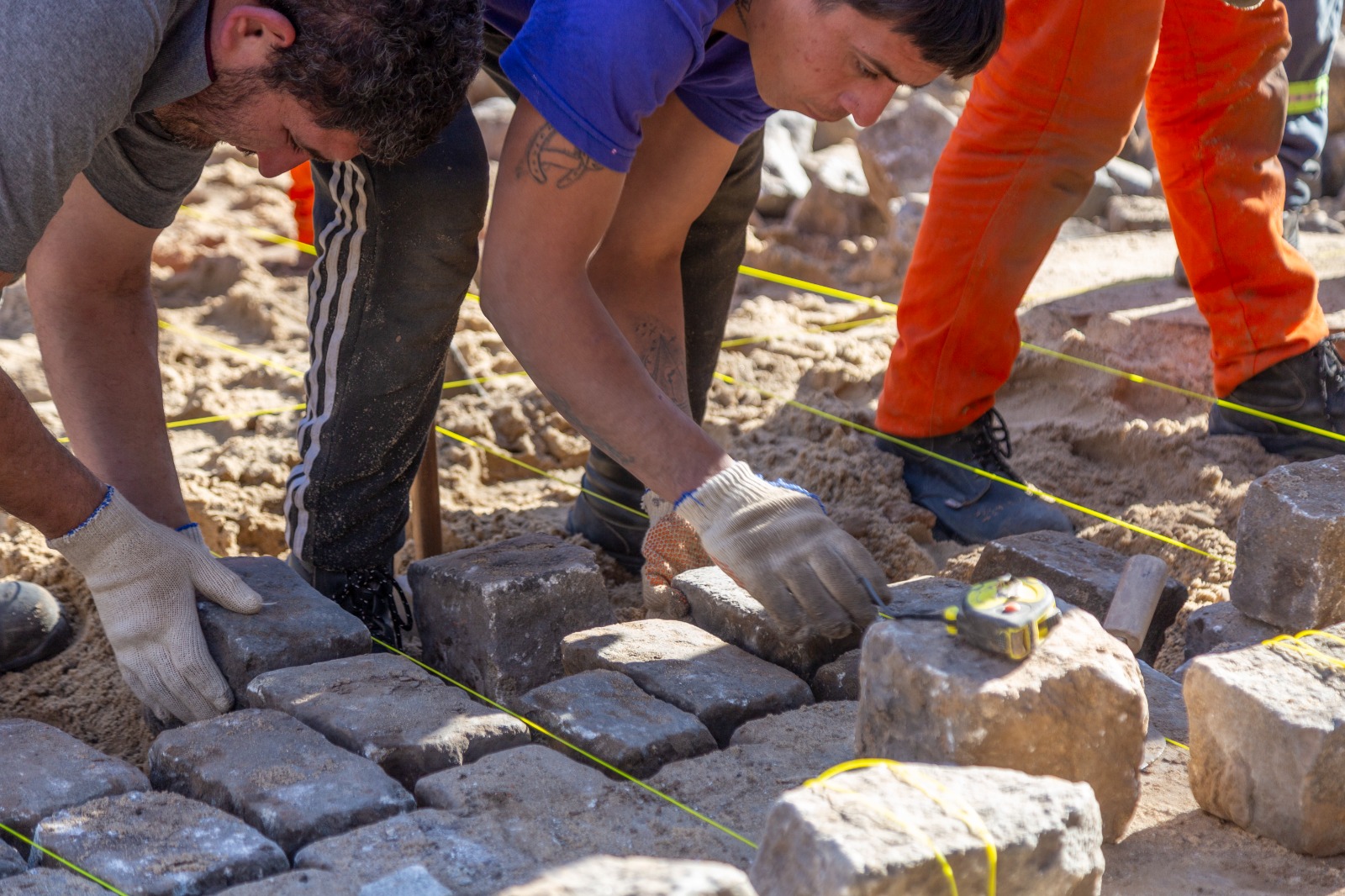 Además, se incorporan mejoras estructurales en los tramos con tránsito intenso o pesado, donde se construye una base de hormigón sobre la cual se recolocan los adoquines, brindando mayor durabilidad.