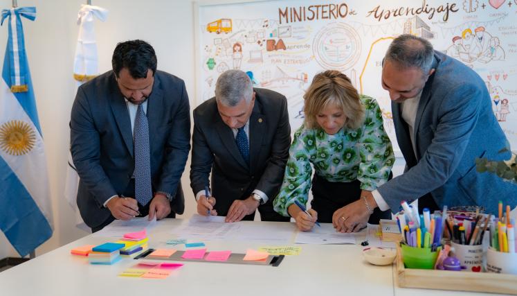 La ministra de Educación, Mercedes Miguel, y el ministro de Seguridad, Horacio Giménez, firmaron un convenio para implementar de manera conjunta SecundarT, con el objetivo de promover la terminalidad educativa de más de 5.100 trabajadores de seguridad privada.