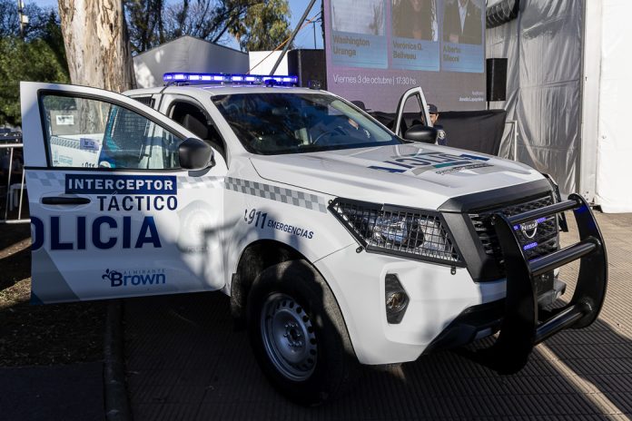 El intendente Mariano Cascallares y la secretaria de Prevención y Seguridad Ciudadana, Paula Eichel, presentaron los primeros cuatro móviles de la Policía Bonaerense equipados con esta tecnología que permite leer en tiempo real los dominios de los vehículos que circulan a su alrededor en las calles y avenidas brownianas e identificar aquellos que tengan pedido de secuestro.